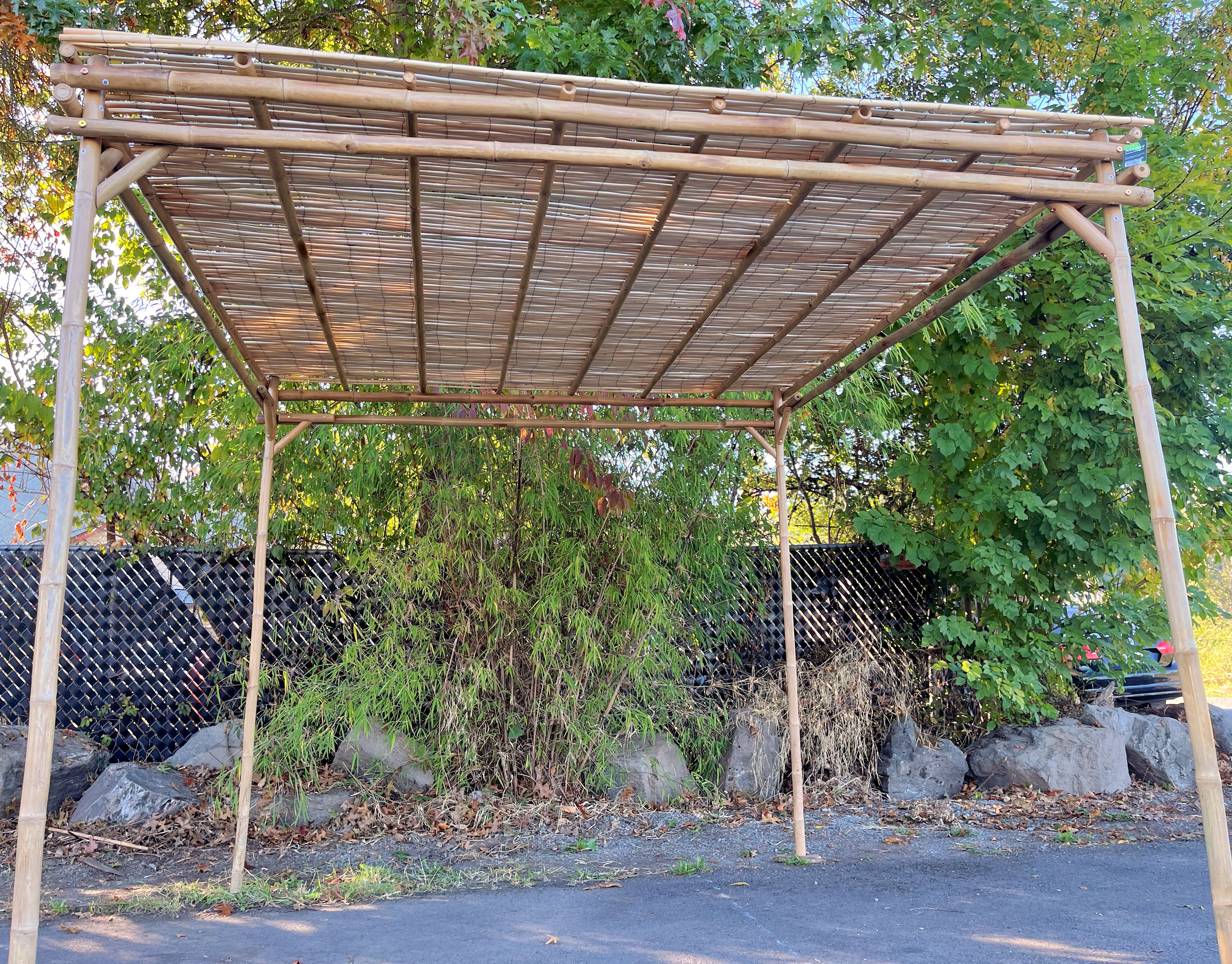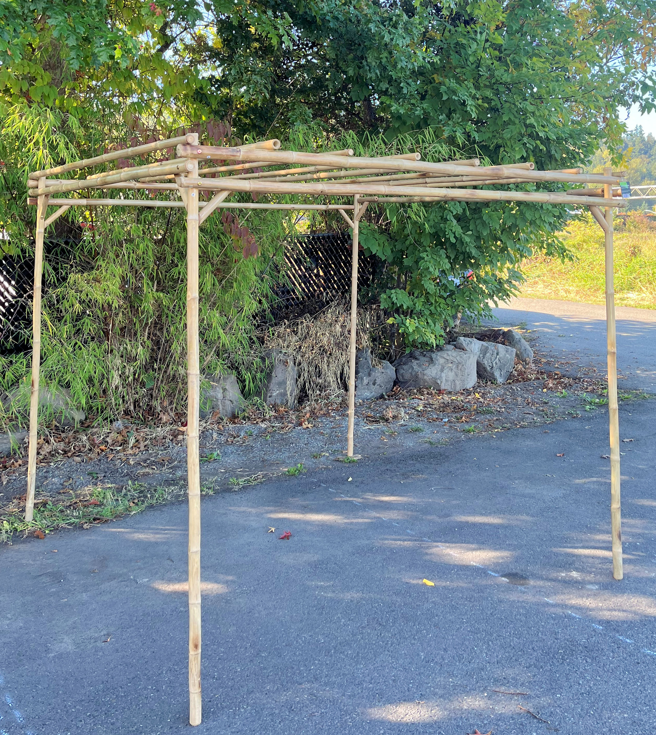 In a garden, on a patio or on a rooftop terrace, these unique bamboo pergolas can be used to create an intimate setting. Define an entrance way or accent an expansive space in your garden. Our bamboo pergola design uses a traditional flat top pergola with a formal style rafter and ladder support. These structures provide ample spaces and are a perfect focal point for any event or for your garden. Easy to transport and install for permanent or temporary use, they are excellent for outdoor parties and weddings or just about anything you can think of. Constructed with thick wall Muso bamboo, these pergolas comes disassembled with all hardware included for installation.