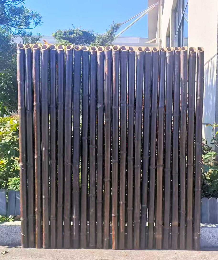 Spear top bamboo fence are popular for blending security with traditional classic style. It offering a deterrent to intruders with their pointed tops while adding elegance to homes, schools, and businesses, it is hand make with enviromental friendly bamboo material. They're versatile, available in various heights and designs (like standard or staggered), and provide a traditional yet functional look for residential perimeters, pools, and commercial properties. Taller bamboo fence are commonly used as privacy fence and he shorter bamboo poles fences used to outline flowerbeds or add charm. They are also used as border fence to define property line or sections. We offer them in 24", 36", 48", 60", 72" high by 48"long section. We used 2" to 2.25" diameter yellow bamboo or carbonized black bamboo. They are hand strung together with galvanized steel wire. They are shipped in compact roll up form. Available in single or double poles style. Key Benefits