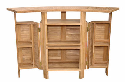 This is a compact foldable bar counter, handcrafted with solid Indonesian plantation teak wood from sustainable plantation sources. It can seat 6 people. To use this bar counter, just expand the table top by unfolding the top.