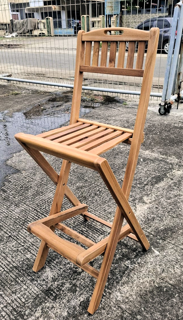 We use solid Indonesian plantation teak to build our one of a kind teak log wood bar stool, it feather classic bar stool design with foot rest. These chair can be easily store away during off season or when they are not in use. We also offer standard dimensional teak wood bar stool. TBS-45 Key Features